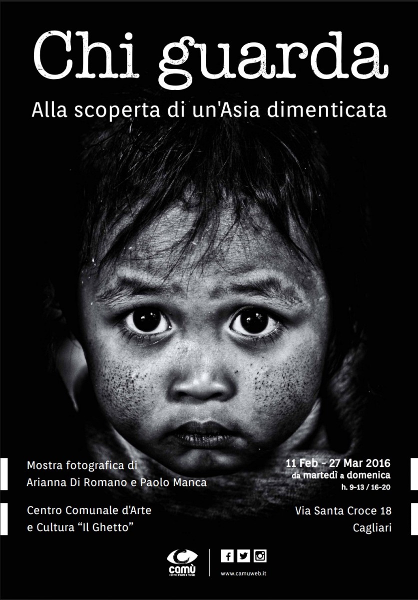 La mostra Chi Guarda - alla scoperta di un’Asia dimenticata racconta, per immagini, la sintesi di un viaggio realizzato nel 2015 e durato sei mesi, nel quale Arianna Di Romano e Paolo Manca hanno percorso 40mila chilometri, con ogni mezzo: piedi, aereo, barca, moto, bici, treno e mongolfiera attraversando Thailandia, Laos, Cambogia, Vietnam, Malesia, Singapore, Corea del sud e Giappone.